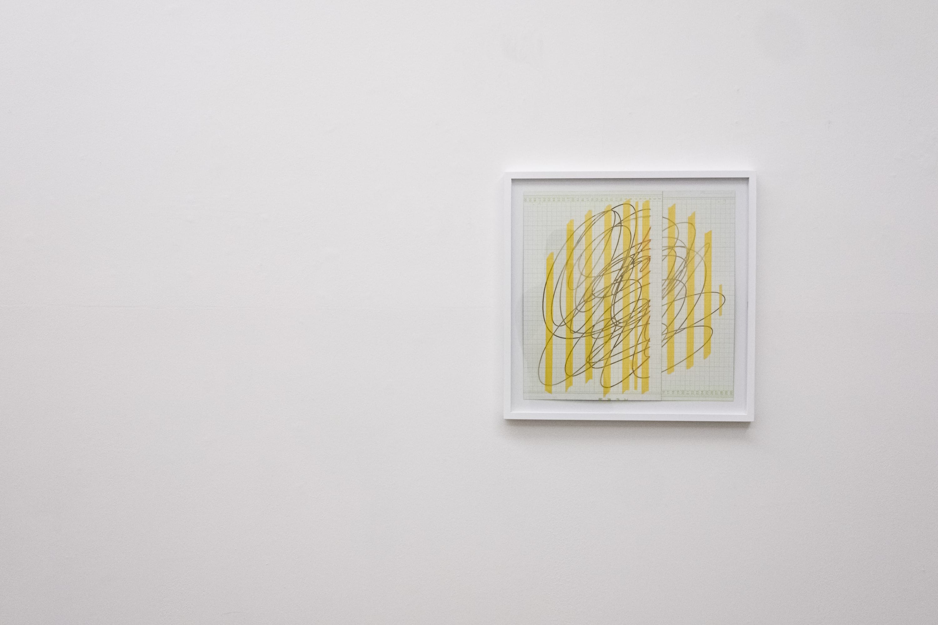 In <Knot(Wall drawing)>, a one-dimensional line forms the base of the surface, yet brings a three-dimensional sense of mass. Still, the material remains two-dimensional, installed within a two-dimensional space. The illusion created in the work arises from lines left behind as gaps – empty intersections